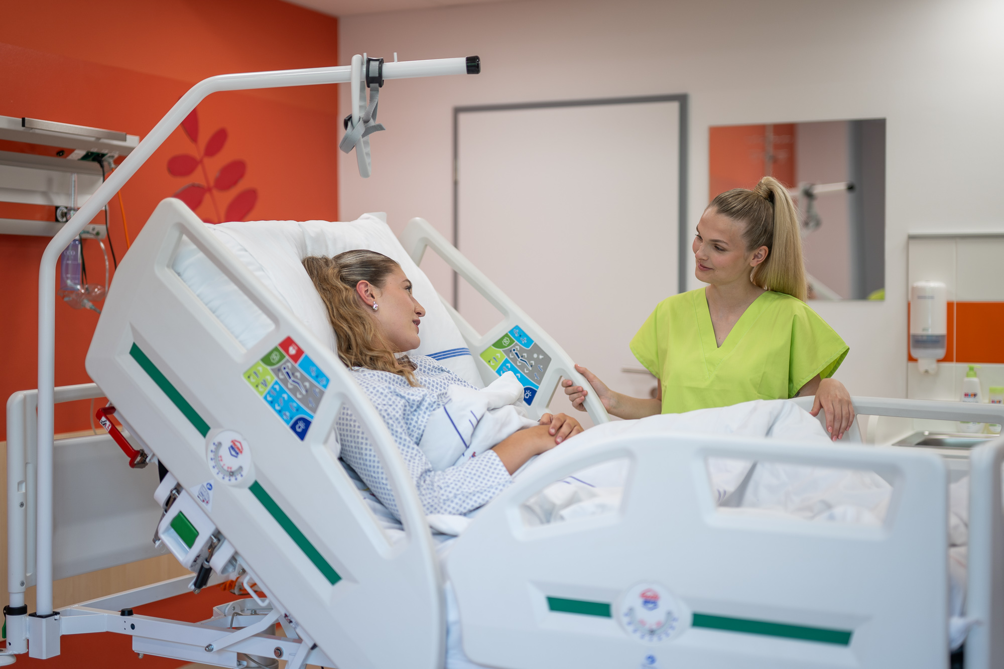 Uživatelsky přívětivé ovladače s jednotným barevným rozlišením funkcí pro snazší orientaci v krizových situacích. Barevné a podsvícené rozlišení funkcí usnadňuje ovládání lůžka také osobám se zhoršeným zrakem, bez brýlí nebo v noci.